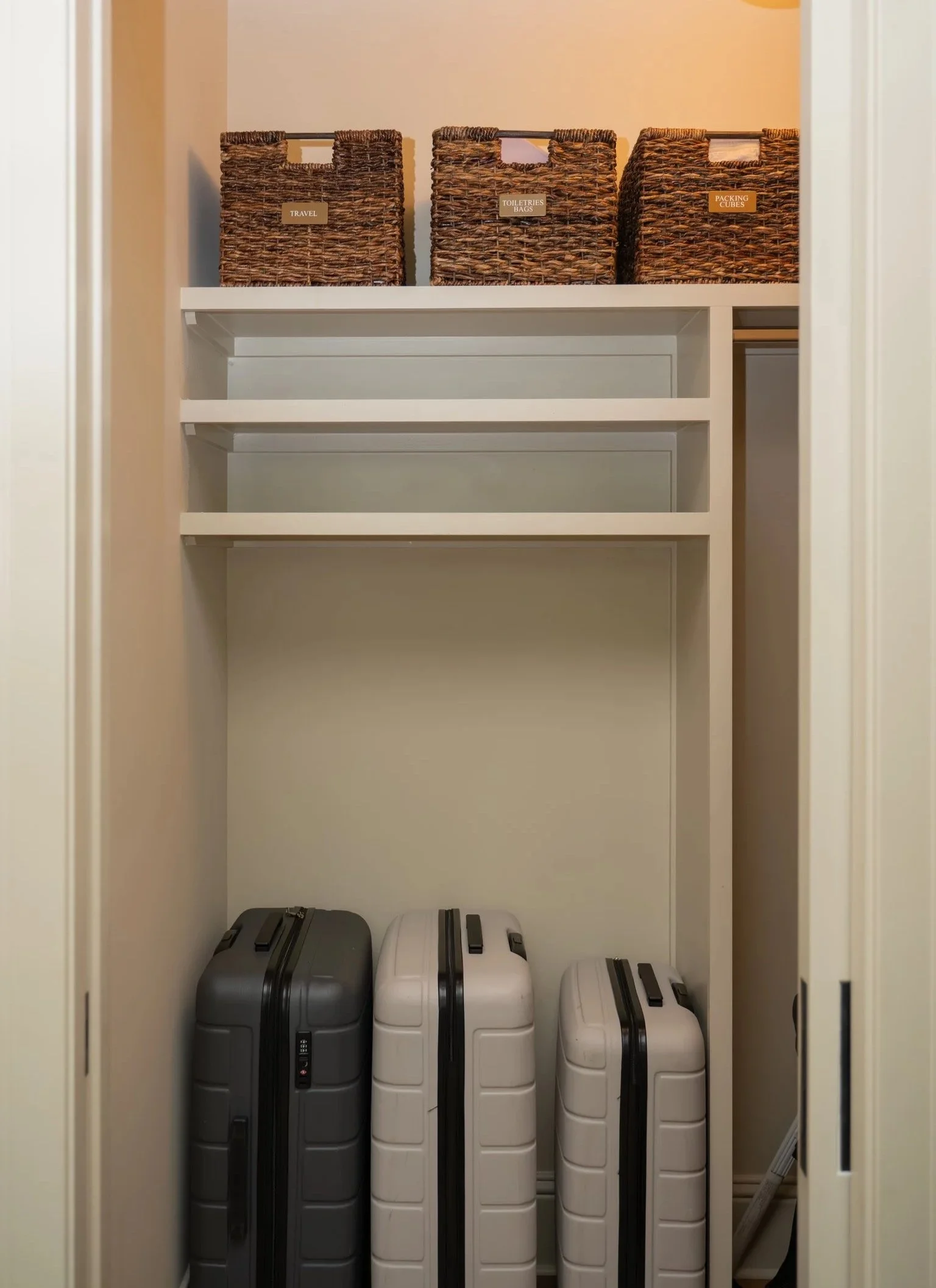 With your travel backstock zone established, we then always encourage clients to choose a specific closet, corner of the laundry room, guest room dresser, or any specific spot of your choice and make it the permanent packing (and unpacking!) zone. This doesn’t need to be very large or elaborate, but a thoughtful spot that is respected year-round by the whole family.