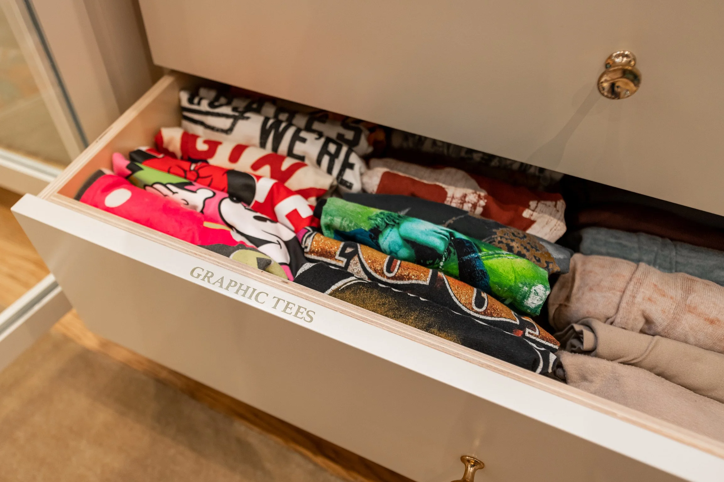 Pro Tip: Provide incentives for keeping up a space and create solutions that are easy to maintain. This might even mean that items such as swim and underwear are never folded but a simple win for kids is that they are always in the correct basket, bin or drawer.