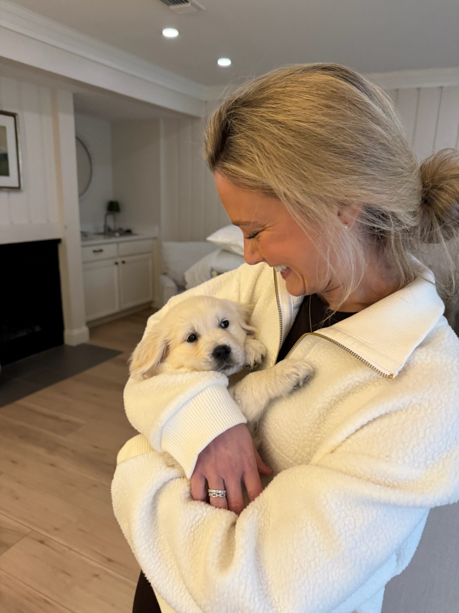 Brie—a sweet little English Golden Retriever—officially joined our crew, much to the curiosity (and occasional confusion) of our four-year-old dog, Queso, and our one-year-old cat, Mr. Cheddars. (Yes, we are fully committed to the cheese theme.)